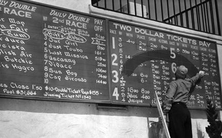 odds for each horse by writing them on a chalkboard at on-track gambling