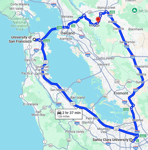 and all those Californian towns are right next to each other. It only takes so long to travel between