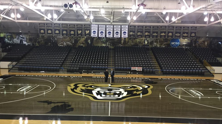 Michigan State, 29 Seasons 4 Mark Few, Gonzaga, 25 Seasons Kampe s salary for this season is $329,609. Kampe's #14 Golden Grizzlies upset #3 Kentucky in the First Round of this year's tournament. Kentucky coach John Calipari s basic annual pay for this season is scheduled to be $8.5 million. The floor Athletics Center O'rena is a 4,000-seat multi-purpose arena that is home to the Oakland University Golden Grizzlies men's basketball, women's basketball and volleyball teams. The court has a distinctive "blacktop" color first used in the 2015 16 season. The facility opened November 17, 1998, at a cost then of $32 million. The opening of the O'rena coincided with Oakland's move from Division II to Division I. In April 2015 Oakland unveiled the blacktop court. The Golden Grizzlies have the nation's only all-black court which includes an outline of the state of Michigan and the bear head logo at center court. A new state-of-the-art sound and light system was also installed to enhance the game day experience. |